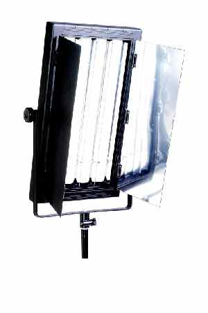 Professional, fluorescent cool, daylight balanced 5400°K Efficency: 900W, power consumption 220W It has built-in 4 leaf barndoor and traslucent panel to reduce light. SUPERNATURLUX has built-in 4 double barrel fluorescent tubes Dulux L 55W You can switch 2+2 lights On or Off to control the brightness and keep the same colour temperature.