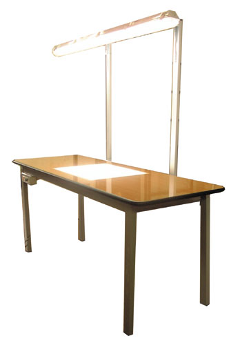 Plan bright on opalescent crystal 60 x 50 cm with 4 fluorescent tubes to natural light (5400° K) from 18 watts with electronic regulation of the light. Light higher with fluorescent tube to daylight (5500° K) from 65 Watt. Electrical panel with switches for lights and electrical service. Mains: 230 V - 50Hz