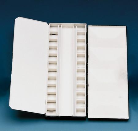 Art. 80508 With lid. Made from varnished steel and coat anti-rust tratment. Fitted with 24 half pans. Size 21x8x2,5 cm