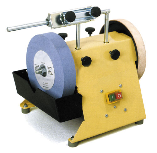 Base stable steel painted in black, anti-engine protection, corundum grinding wheel to the highest quality, including utensils HS, disc for sharpening leather removable, anti-slip backing, sharpening device, pulp sharpening, team angle, tray for water, power cable with schuko 1.75 m.