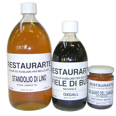 High viscosity oil, with tendency to yellow. It imparts a very glossy texture and spreads the brush stroke. It is advisable to wait about 1 month before varnishing the painting with a finish product.